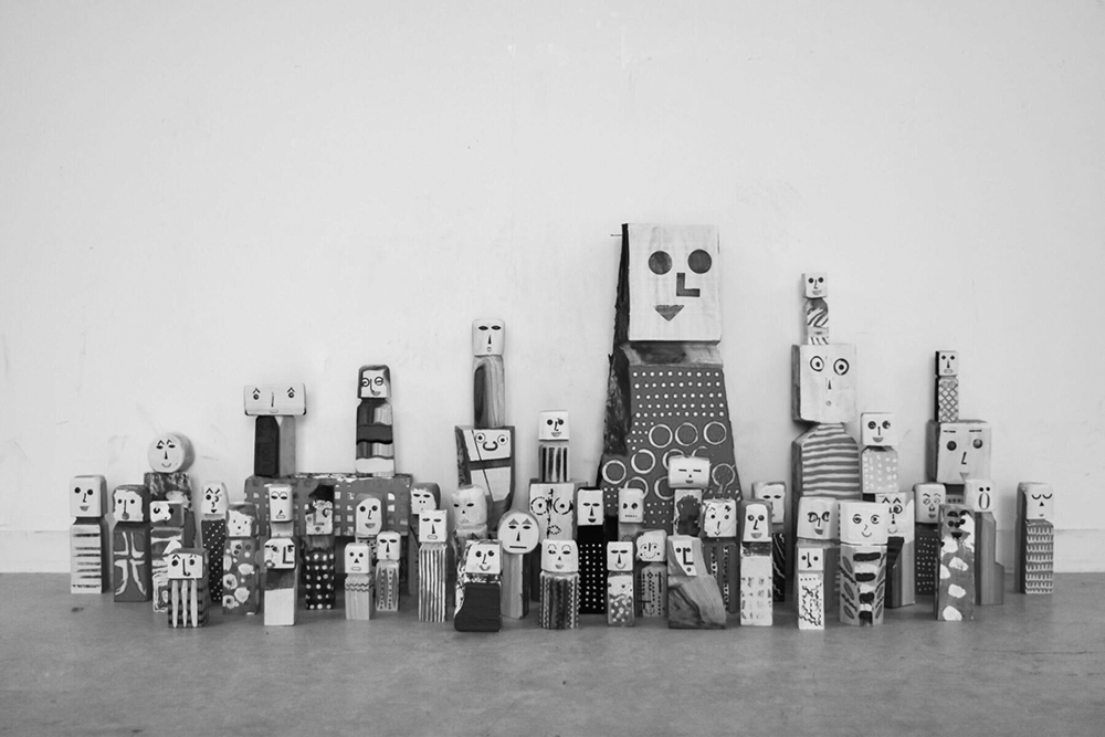 玩具と工芸の間を発掘・探究・創作するユニット、玩具工芸舎と Good Job!センターが協働し、世界文化遺産である春日大社境内の杉の端材にハンコの風合いをあわせた人形を制作。大正時代に長野県旧神川村(現上田市)ではじまった「農民美術運動」に根ざす木彫りの“こっぱ人形”をもとに、木端(こっぱ)+ハンコで「コッパン人形」と名づけた。世界各国の民芸玩具のエッセンスを取り込んだ、ボーダレスな意匠と匿名性。人形の顔はハンコの組み合わせで豊かに表現され、愛嬌あるものに仕上がった。シンプルな制作工程によって、障害のある人も含めさまざまな特性のある人が、ものをつくる喜び、手仕事の喜びに触れられるものになっている。