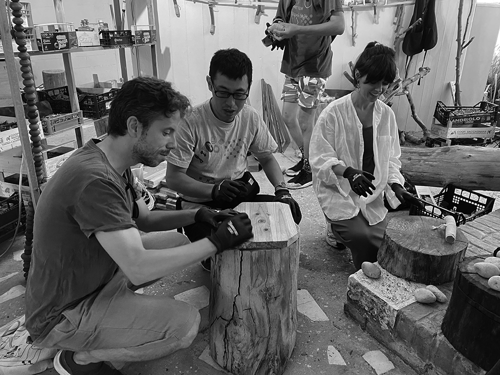 第18回ヴェネチア・ビエンナーレ国際建築展の日本館展示に参加した。テーマは「愛される建築を目指して-建築を生き物として捉える」。メインキュレーターをGood Job!センター(以下、GJ!センター)の建築を手がけた大西麻貴さんが務め、建築を営みや記憶とともに育まれる「生きた場」として来場者へひらくべく、ニュートラも多様な人との協働によるものづくり、豊かな場づくりを現地に渡航し実践した。会場では、GJ!センターで手がけたさまざまな張り子のほか、ニュートラによる「春日大社境内の杉から生まれた燭台」「たたいて みがいて つくる木の仕事」の製品を紹介。また、「たたいて みがいて つくる木の仕事」に関わったGJ!センターのメンバーが、丸太を石で叩いたり、木の表面をブラシ状の道具でこする木工の加工技法「うづくり」を行ったりと、製作のデモンストレーションも実施した。日本の伝統的な道具や、シンプルな動作によるものづくりに来場者は興味津々。張り子の着彩ワークショップも行い、会場内は集まった現地の子どもたちで華やいだ。